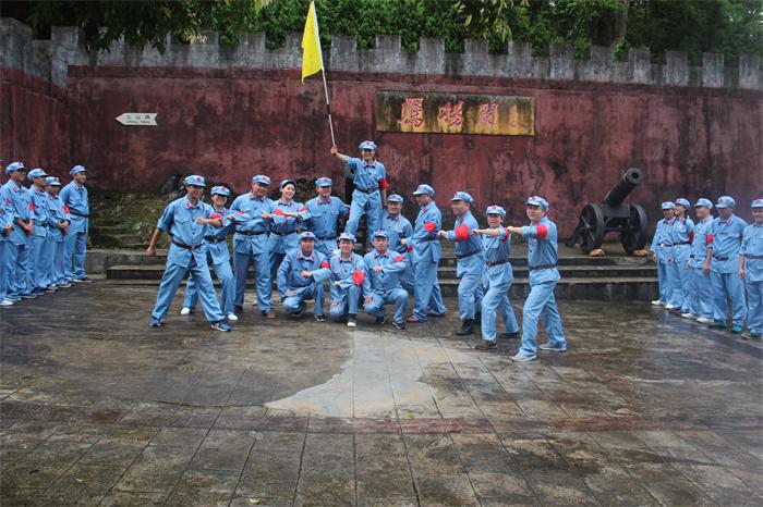 在紅七軍廣場,我們開展了拓展培訓比武。四個縱隊分別選出自己的隊長和政委,在規定的時間內確定隊名、隊徽、口號、隊形并進行操練。經過一番謀劃,雄鷹隊、陽光隊、飛鷹隊、鐵軍隊騰空出世。接下來便是登場亮相,首先上場的是鐵軍隊,在一番隊形變換后,喊出了“城投鐵軍,永奪冠軍”的口號震撼大地。