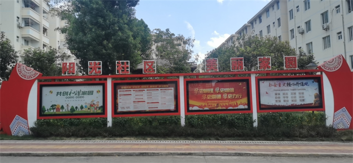 采取多種形式,廣泛開展宣傳教育和引導帶動,做到家喻戶曉,人人皆知,小區通過懸掛橫幅、制作宣傳櫥窗、公共欄張貼標語、廣播宣傳等形式多方位全面覆蓋小區。