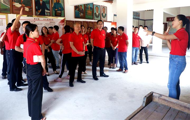 在黃士韜故居前,公司黨支部副書記蘭乾雄帶領黨員重溫入黨誓詞。全體黨員面向黨旗,緊握右拳,莊嚴宣誓。