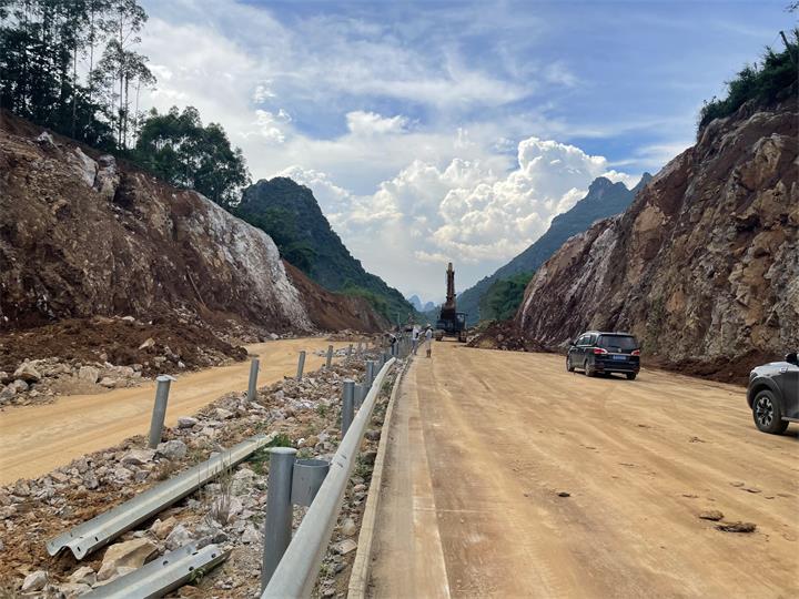 賀州(賀街)至富川一級公路二期工程(蓮塘至西灣段)塌方路段邊坡排險施工已基本完成,目前正在開展施工路面現場清理工作,待交警部門現場驗收確認后可開放交通。