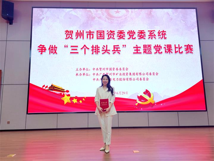 發(fā)布時(shí)間:2022-07-01 作者:圖文/吳姍 來源:本站原創(chuàng) 審核:葉茂桃6月29日,賀州市國(guó)資委黨委舉辦國(guó)資系統(tǒng)爭(zhēng)做“三個(gè)排頭兵”主題黨課比賽。市國(guó)資委黨委班子成員出席活動(dòng)。城投集團(tuán)機(jī)關(guān)第一黨支部書記、董事會(huì)秘書湯彩燕,城投交通公司人力資源部經(jīng)理吳庚敏代表集團(tuán)黨委參加并順利入圍黨課決賽。集團(tuán)黨委副書記、工會(huì)主席梁輝露率黨員代表觀摩黨課,為參賽選手鼓勁加油。