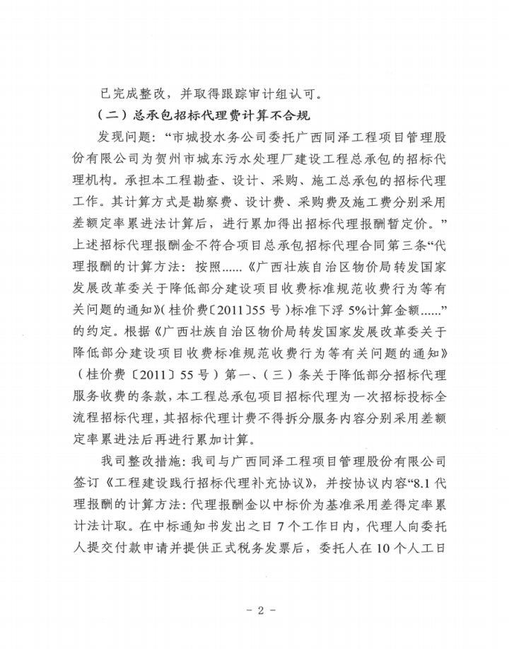 上一篇:關于賀州市城投公司辦公樓附屬裝修工程結算審計發現問題整改情況的報告