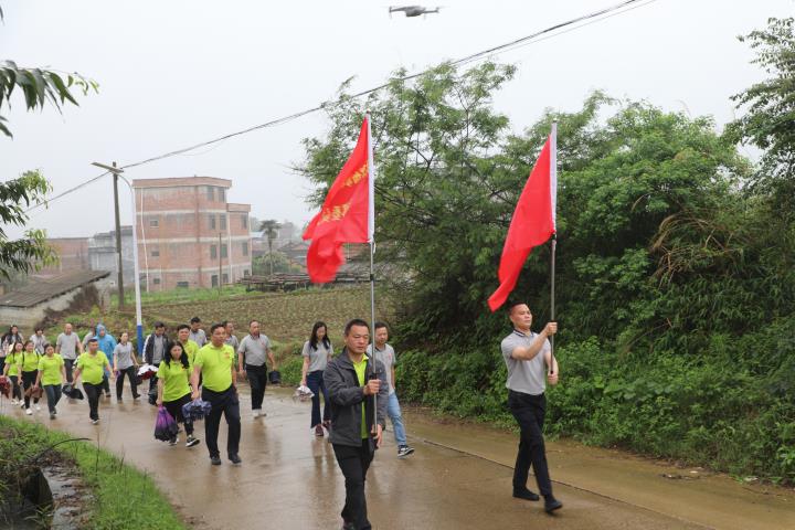 綿綿陰雨中,全體黨員干部高唱著《沒有共產(chǎn)黨就沒有新中國》《團結(jié)就是力量》等紅歌,重走平安村紅軍路,深切感受著紅軍堅韌不拔、不屈不撓、勇往直前的紅色革命精神。