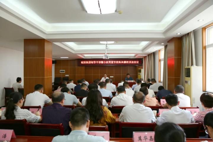 為深入開展入企第一課,4月28日,城投集團黨委召開集團領導干部警示教育暨節前集體廉政談話會,打好廉潔自律“預防針”。城投集團黨委書記、董事長黃俊出席會議并作集體廉政談話。集團黨委委員、紀委書記盧顯佳主持會議。
